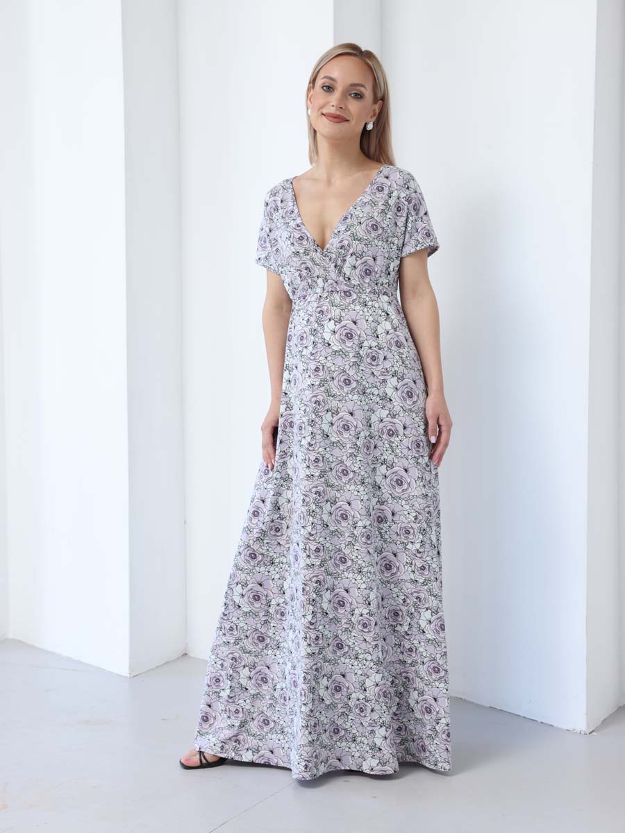 3-НМ 60909 Платье женское д/б и корм серый/сиреневый/черный 170,176-100-106